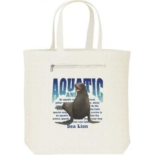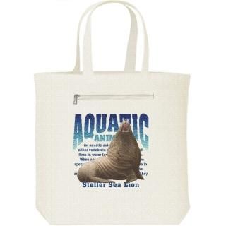 セイウチ(絶滅危惧動物)/キャンバス トート バッグ・ファスナー ポケット付