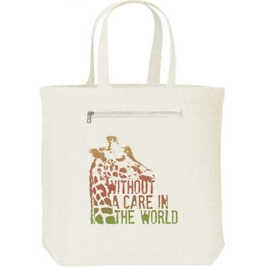 麒麟(きりん)とロゴのイラストです。<ロゴ部分> Without a care in the world.(何の悩みもなく、のんきなもんだ)
