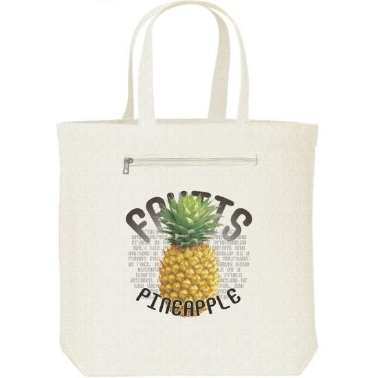 パイナップル(果物シリーズ)/キャンバス トート バッグ・ファスナー ポケット付